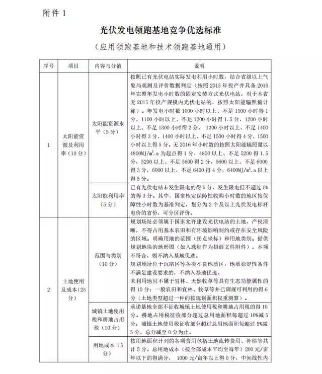附件:1.光伏發(fā)電領(lǐng)跑基地競爭優(yōu)選標準
