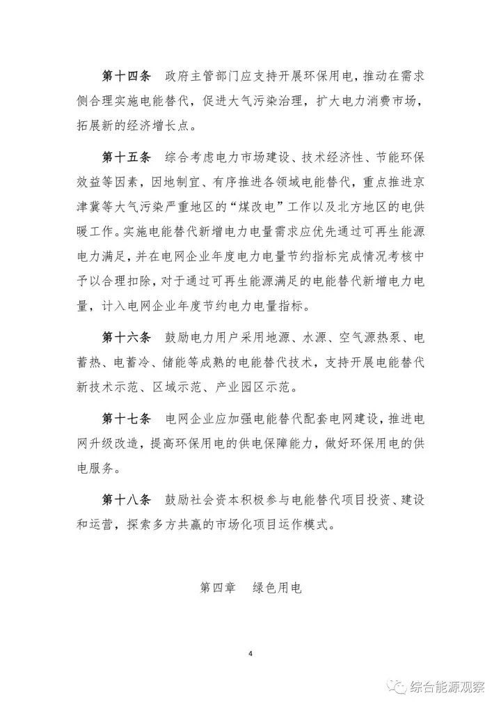 在2010年辦法基礎(chǔ)上,2017年辦法單列環(huán)保用電章節(jié),尤其提出重點(diǎn)推進(jìn)京津冀等大氣污染嚴(yán)重地區(qū)的“煤改電”工作以及北方地區(qū)的電供暖工作。實(shí)施電能替代新增電力電量需求應(yīng)優(yōu)先通過可再生能源電力滿足,并在電網(wǎng)企業(yè)年度電力電量節(jié)約指標(biāo)完成情況考核中予以合理扣除,對(duì)于通過可再生能源滿足的電能替代新增電力電量,計(jì)入電網(wǎng)企業(yè)年度節(jié)約電力電量指標(biāo)。