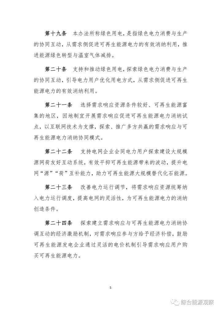 (三)促進(jìn)可再生能源消納。各有關(guān)部門和企業(yè)要加強(qiáng)消費(fèi)與生產(chǎn)的協(xié)同互動(dòng),從需求側(cè)促進(jìn)可再生能源電力的有效消納利用,推進(jìn)能源綠色轉(zhuǎn)型與溫室氣體減排。