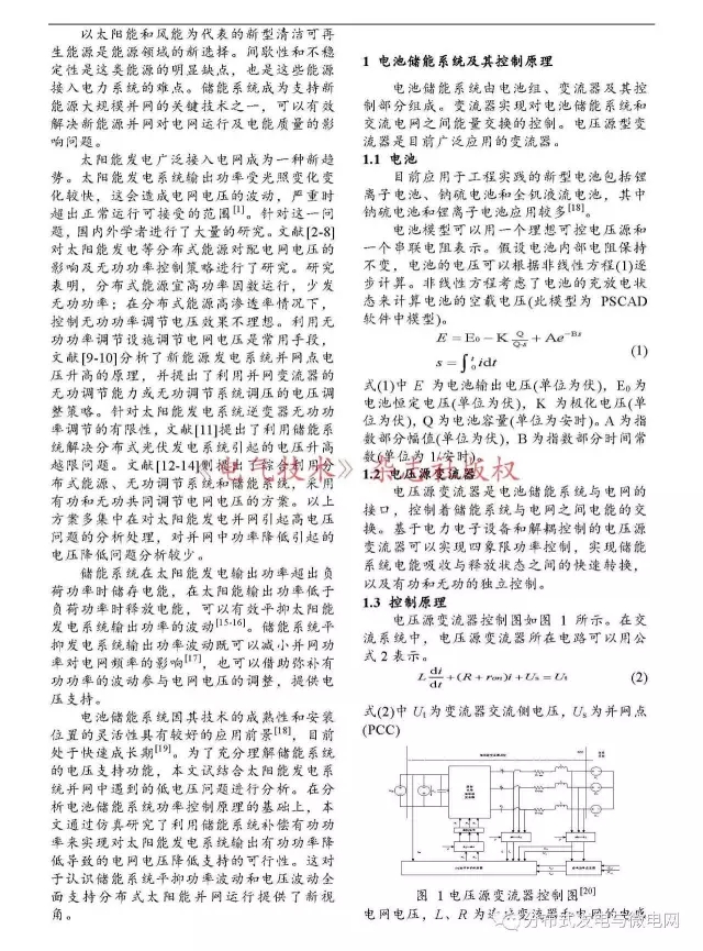 中國儲能網(wǎng)訊:黃河水利水電開發(fā)總公司的研究人員李憲棟、石月春,在2017年第8期《電氣技術(shù)》雜志上撰文,為了研究儲能系統(tǒng)的電壓支持功能,分析了利用儲能系統(tǒng)解決太陽能發(fā)電系統(tǒng)引起的電網(wǎng)電壓波動問題的可行性。