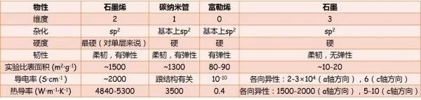 表1就列出了石墨烯與其他幾種聲名在外的碳質(zhì)材料的物性對(duì)比,如此出眾的性能在時(shí)人眼中如獲至寶。