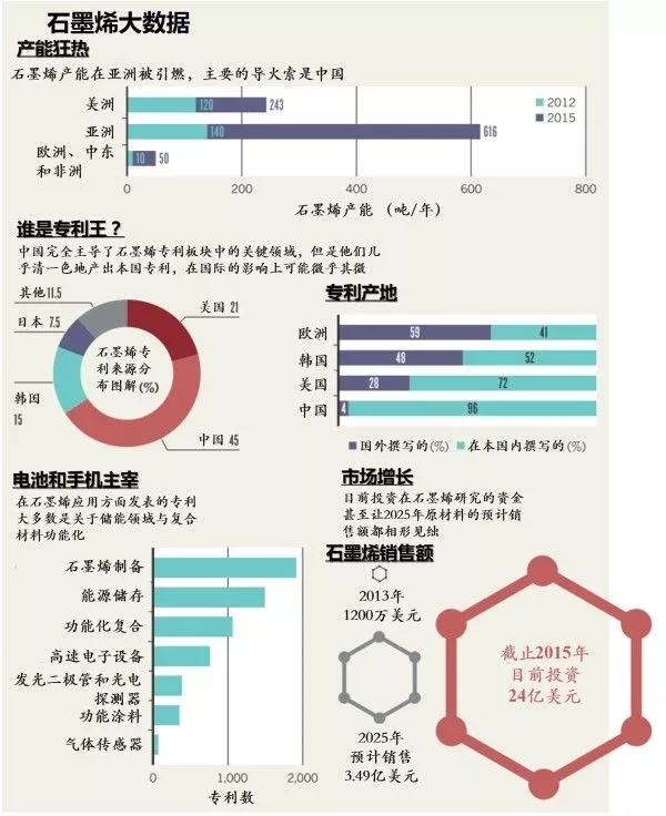 圖2 截止到2015年為止的石墨烯大數(shù)據(jù)(截圖來(lái)自《Graphene booms in factories but lacks a killer app》)