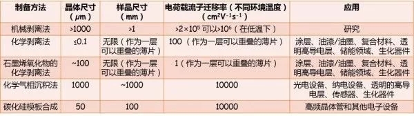 表2 通過(guò)不同方法制備石墨烯的簡(jiǎn)單物性參數(shù) (來(lái)自《A roadmap for graphene》)