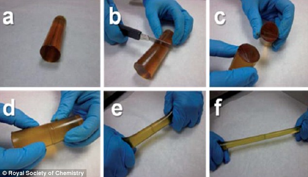 在實驗中,研究人員將一段樣品材料切斷后再推回到一起,在兩個小時內(nèi),樣本的97%已告“痊愈”——看似完全融合在一起,在用手向兩端拉伸時其仍然牢固。該中心科學(xué)家阿萊茨·里孔多、羅伯特·馬丁等人表示,新材料的突破點是在室溫環(huán)境下,表現(xiàn)出了定量的自愈合效率,而不需要施以熱或光等任何外部干預(yù)。