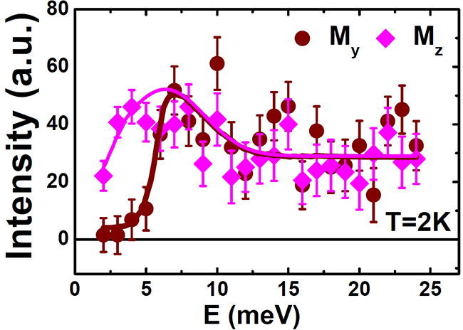 圖2. 低能自旋激發(fā)在y和z極化方向出現(xiàn)明顯的各向異性。