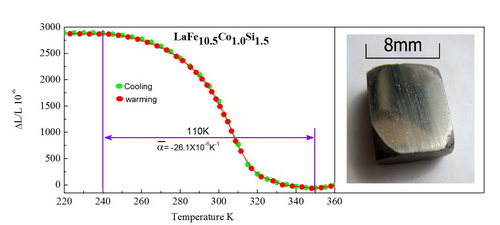 LaFe10.5Co1.0Si1.5材料的熱膨脹性能及樣品照片