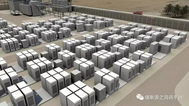 圖3 Powerpack及逆變器組成的大規(guī)模電池儲(chǔ)能系統(tǒng)(來(lái)源: Tesla)