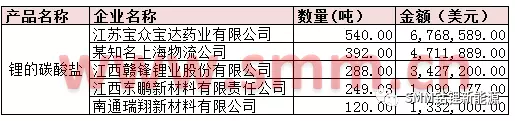 表二:8月碳酸鋰進(jìn)口量值TOP5企業(yè)(來源:海關(guān)信息網(wǎng),SMM)