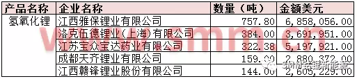 表三:8月氫氧化鋰進(jìn)口量值TOP5企業(yè)(來源:海關(guān)信息網(wǎng),SMM)