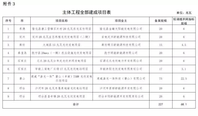 河北省2017年普通光伏發(fā)電項(xiàng)目并網(wǎng)計(jì)劃(第三批)安排情況公示