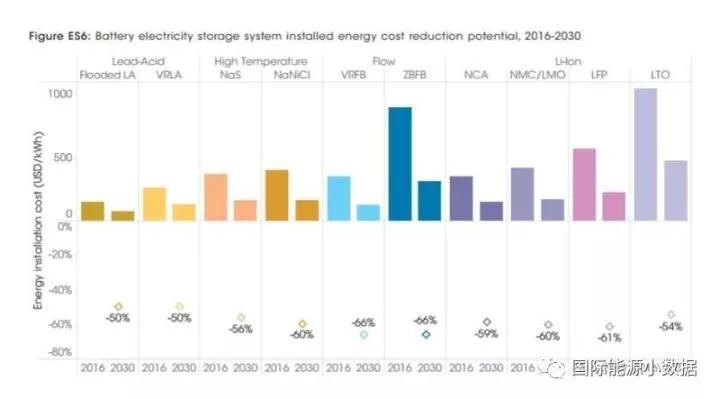 盡管抽水蓄能仍占絕對優(yōu)勢,但是未來其成本下降空間有限,而各類電池儲能成本可望下降50-60%。預(yù)計(jì)2030年抽水蓄能裝機(jī)將小幅增至235吉瓦,而電池儲能將快速攀升至175吉瓦。