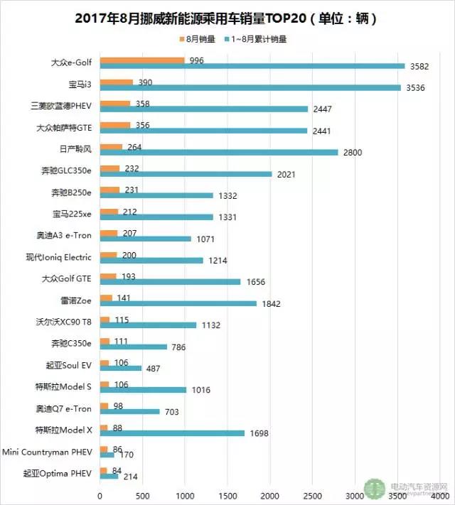 2017年8月,挪威新能源乘用車銷售了五千余臺(tái), 1-8月新能源乘用車?yán)塾?jì)銷量3.6萬(wàn)臺(tái)。從挪威汽車市場(chǎng)來看,新能源乘用車已經(jīng)占據(jù)了高達(dá)35%的市場(chǎng)份額。