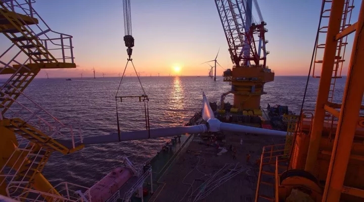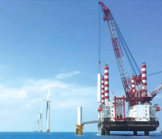 ↑ 金風(fēng)科技海上風(fēng)電項(xiàng)目吊裝現(xiàn)場