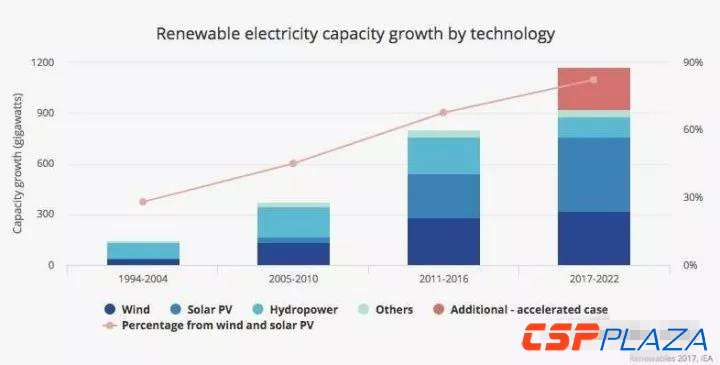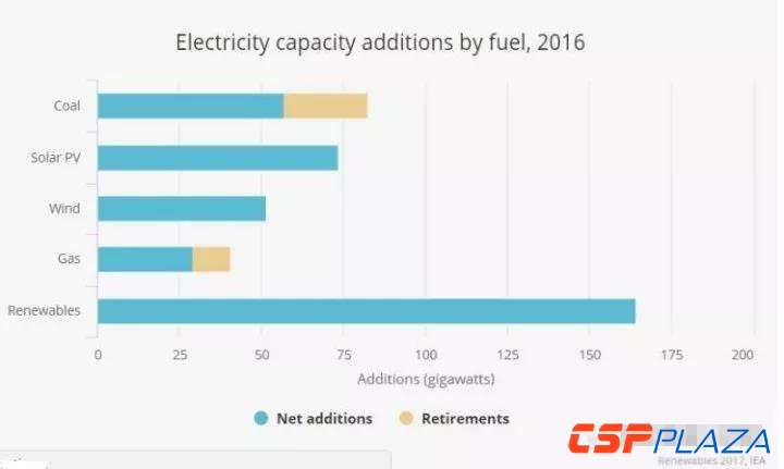 中國儲能網(wǎng)訊:國際能源署發(fā)布2017年可再生能源報告,確認2016年全球新增可再生能源裝機165吉瓦,其中太陽能光伏裝機達到74吉瓦(約46%來自中國),首次超過煤電新增裝機(57吉瓦)。