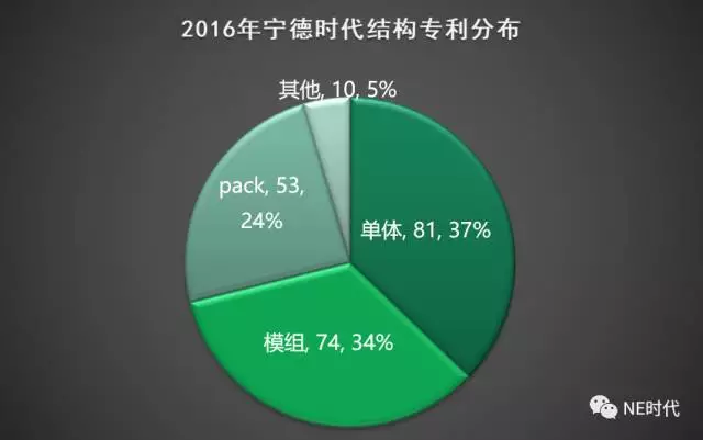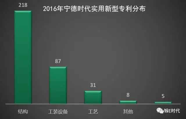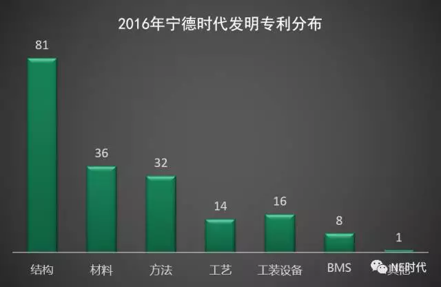 寧德時(shí)代2016年申請(qǐng)的實(shí)用新型專利主要集中在結(jié)構(gòu)和工裝設(shè)備方面,其中結(jié)構(gòu)專利占62%。