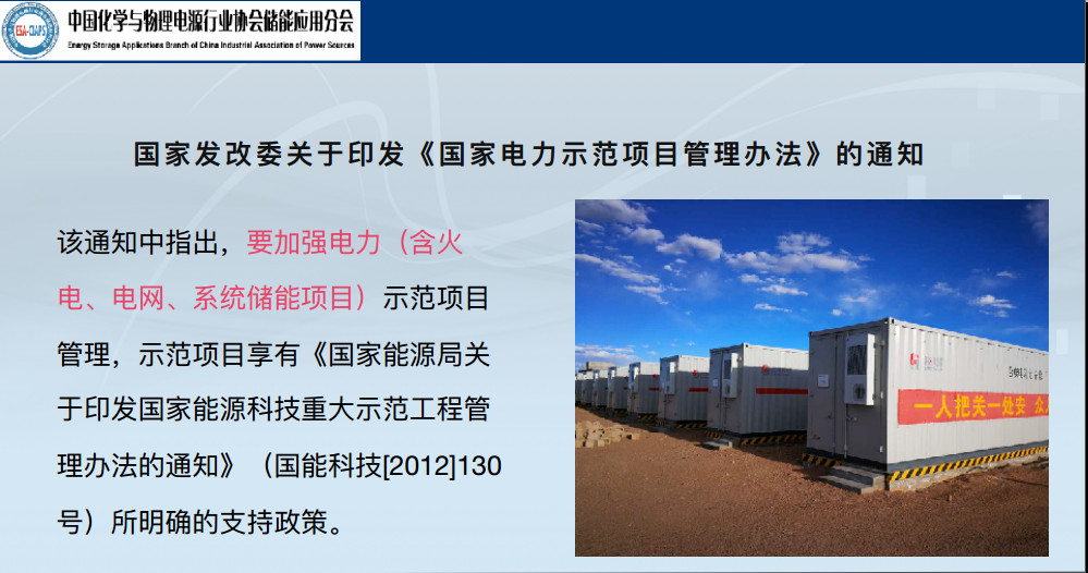 這是電力示范項(xiàng)目,這是比較重要的,所有項(xiàng)目里面含了儲能示范項(xiàng)目的管理,支持政策寫的很清楚,2012年發(fā)布的關(guān)于能源重大示范工程管理辦法通知里面已經(jīng)有了。