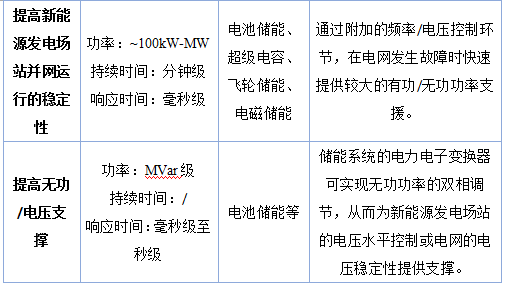 表1 儲能與可再生發(fā)電配合的典型應(yīng)用和要求