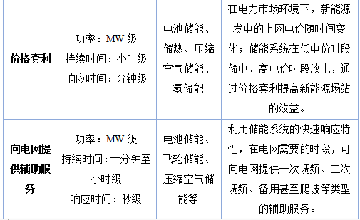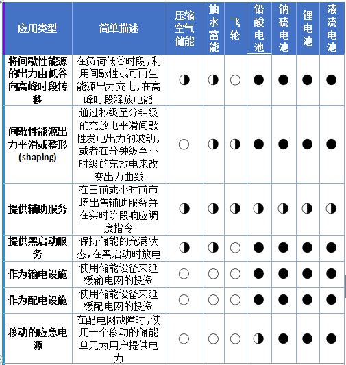 表2不同儲能技術(shù)適合的應(yīng)用類型