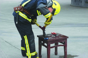 消防員剪開鋰電池