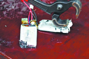 昨天,記者在龍?zhí)逗乐嘘犕ㄟ^實(shí)驗證實(shí),鋰電池一旦發(fā)生物理損傷就會發(fā)生膨脹、冒煙,尤其在沾水之后,鋰電池會釋放出更多的熱量。