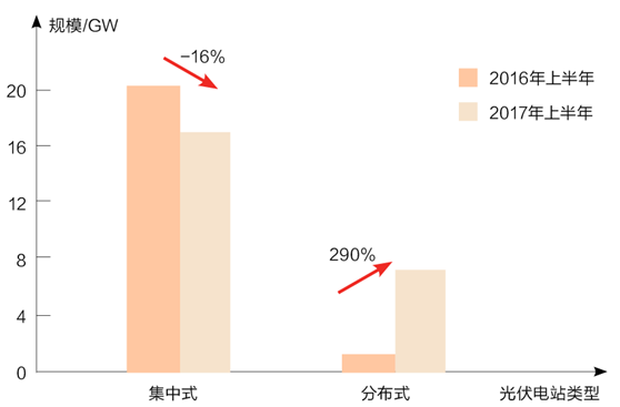能源局的數(shù)據(jù)顯示,上半年光伏發(fā)電市場規(guī)模快速擴大,新增光伏發(fā)電裝機2440萬千瓦,其中,光伏電站1729萬千瓦,同比減少16%;分布式光伏711萬千瓦,同比增長2.9倍。從數(shù)據(jù)來看,最為亮眼的無疑是分布式光伏的近三倍增長,在集中式地面電站逐漸收縮的時候,分布式光伏已成為另一個爆發(fā)點。