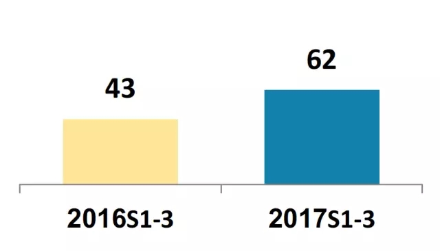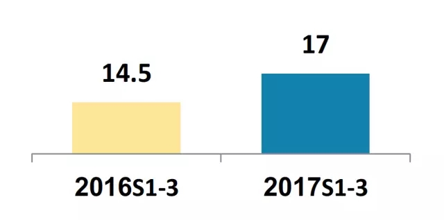 前三季度多晶硅產(chǎn)量約為17萬噸,同比增長17%;