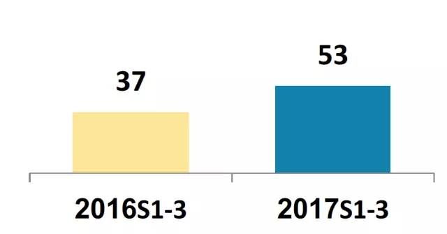 前三季度我國組件產(chǎn)量約為53GW,同比增長約43%;