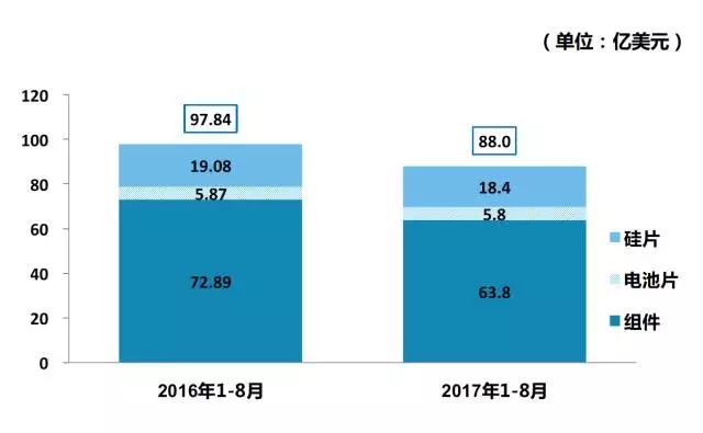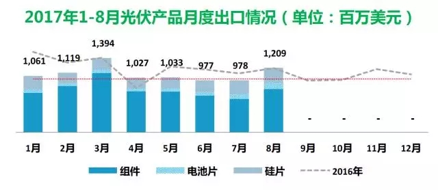 對外貿(mào)易:2017年1-8月中國光伏產(chǎn)品進出口總體情況