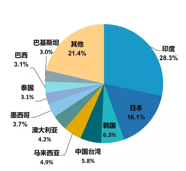 新興市場快速崛起,印度取代日本成為全球第三大市場和我國最大光伏產(chǎn)品出口國。