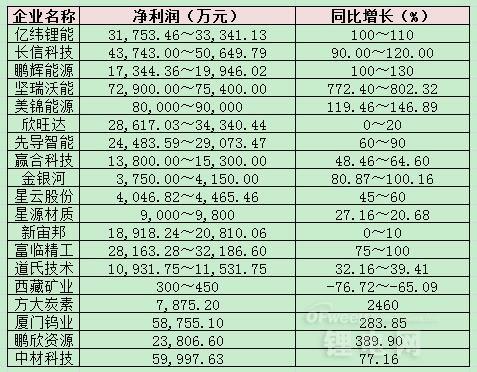鋰電上市公司前三季度凈利潤(rùn)數(shù)據(jù)