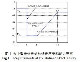 光伏電站低電壓穿越技術(shù)(LowVoltageRideThrough,LVRT)是指當電網(wǎng)故障或擾動引起的光伏電站并網(wǎng)點電壓波動時,在一定的范圍內(nèi),光伏電站能夠不間斷地并網(wǎng)運行。