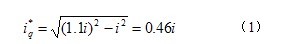 正常情況時逆變器運行在單位功率因數(shù),id=i=1(pu),逆變器輸出電流i在電網(wǎng)電壓跌落時不能超過額定電流的1.1倍,id以1pu作為限制,則最大無功電流給定有: