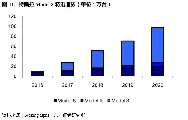 階段3:為超級(jí)電池工廠建成之后(2017-):電池成本下降30%以上。預(yù)計(jì)21700單體價(jià)格為$3.3,折合0.14美元/w。由于Model3電芯數(shù)量較少且容量較少,預(yù)計(jì)Model3BMS+PACK成本為$2880左右,綜合電池包成本為$6960,電池包成本占比29%。