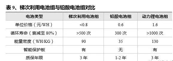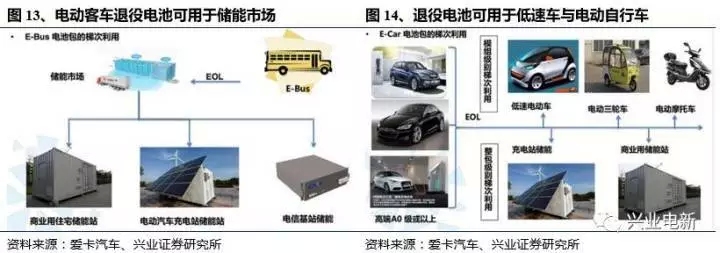 2)低速電動(dòng)工具市場(chǎng):低速車與電動(dòng)自行車主要采用鉛酸電池,相比鋰電池,鉛酸電池更為便宜(0.6元/WH),但問題在于污染大。如果采用梯次利用的動(dòng)力電池,可以在價(jià)格、行駛里程(能量密度)、和壽命之間達(dá)到一個(gè)較好的平衡,從而更快速的推動(dòng)鋰電池在低速車與電動(dòng)自行車市場(chǎng)的應(yīng)用。