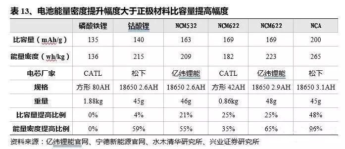 正極材料:高鎳NCM材料與NCA材料,高比能量的正極材料能夠大大減少負(fù)極、隔膜與電解液等材料的用量。