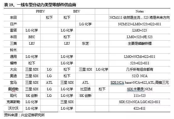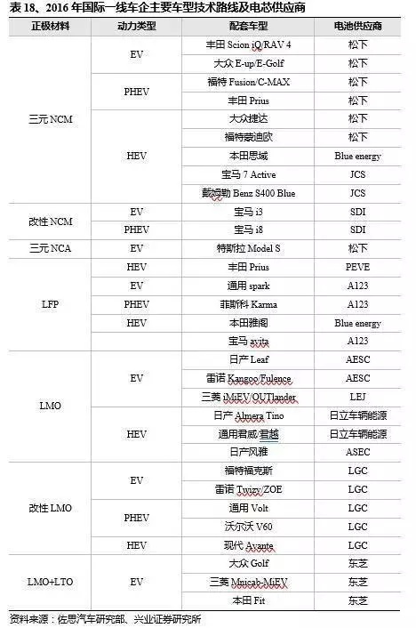 興業(yè)證券認(rèn)為國內(nèi)動(dòng)力電池企業(yè)在成本上較日韓巨頭有優(yōu)勢(shì),但在技術(shù)儲(chǔ)備上處于劣勢(shì)。國內(nèi)企業(yè)未來的降成本提技術(shù)之路必然是在對(duì)于國外的模仿基礎(chǔ)上實(shí)現(xiàn)超越,模仿的對(duì)象不應(yīng)局限在電芯級(jí)別,而是目前已在全球暢銷車型中實(shí)現(xiàn)商業(yè)化的主流電池包及其采取的技術(shù)路線。興業(yè)證券對(duì)三款最為主流的車型電池組進(jìn)行剖析,而這三款電池也正好對(duì)應(yīng)三家日韓巨頭電池企業(yè),松下、LG與三星;以及三種主要的封裝形式,圓柱、軟包與方形路線。