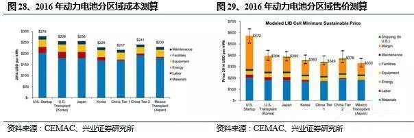然而,單就成本而言,中國在主要的產(chǎn)地已經(jīng)展現(xiàn)出優(yōu)勢(shì),在包括四大材料在內(nèi)的主要電池材料供應(yīng)環(huán)節(jié)均涌現(xiàn)一批規(guī)模化的企業(yè),具備價(jià)格優(yōu)勢(shì)同時(shí)具備一定技術(shù)能力。根據(jù)CEMAC的測(cè)算,由于在勞動(dòng)力成本與材料成本上的優(yōu)勢(shì),截止2015年底,中國動(dòng)力電池不論在成本還是在售價(jià)上均已處于全球最低水平。考慮到今年以來本土電池掀起的新一輪降價(jià)潮(20%降幅),成本已經(jīng)成為中國動(dòng)力電池的核心優(yōu)勢(shì)所在。未來動(dòng)力電池產(chǎn)能持續(xù)向中國轉(zhuǎn)移是大趨勢(shì),而中國也將成為世界的動(dòng)力電池工廠,培育出一批具備國際競(jìng)爭(zhēng)力的動(dòng)力電池龍頭企業(yè)。