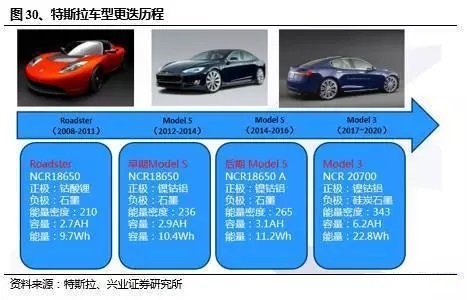 特斯拉Model3電池組:松下21700圓柱NCA電芯+BMS+液冷通用Bolt電池組:LG軟包三元電芯寶馬i3電池組:三星SDI方形三元電芯5.1開啟圓柱三元大眾化路線的先鋒:特斯拉系列車型