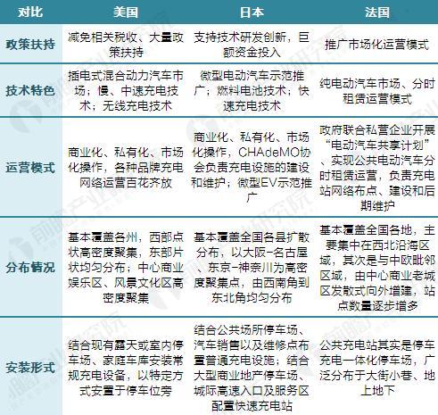 在國家政策方面,美國主要的是以減免稅收和政策扶持為主;日本已巨額資金投入、支持技術(shù)研發(fā)創(chuàng)新為主;而法國則是以推廣市場化運營模式為主,例如通過推動電動汽車租賃Autolib項目帶動充電樁建設(shè)。