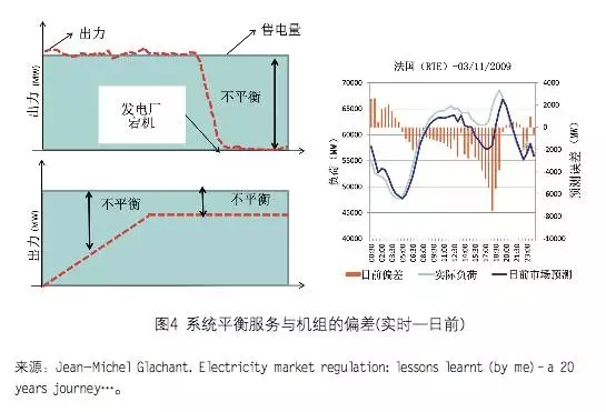 ? 因此,在競爭性市場,機組(或 者機組組合在一起)享受“平衡服務(wù)”, 其原因必然是自身的實際出力相比較自己 的承諾,產(chǎn)生了額外導(dǎo)致系統(tǒng)不平衡的“偏 差”。這一偏差的彌補(由調(diào)度統(tǒng)一管理), 如果意味著額外的平衡成本(偏差也有好壞之分,與總的偏差符號相反的偏差有助 于系統(tǒng)平衡,見圖 4),需要由引發(fā)偏差的 機組承擔(dān),而系統(tǒng)運行者需要各種備用去 應(yīng)對這種不平衡。在可再生能源發(fā)展的初 期,往往是出于積累經(jīng)驗的需要而免除它 的這一責(zé)任。但是目前,越來越多的新建 風(fēng)電與大型光伏項目已經(jīng)開始直接參與市 場,并且承擔(dān)平衡責(zé)任。預(yù)測的準(zhǔn)確率不 高,出現(xiàn)大的出力偏差,往往意味著極高的收益損失(2),甚至是虧損。