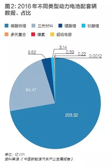 國內(nèi)的動力電池以磷酸鐵鋰電池和三元電池為主,其中磷酸鐵鋰主要供應(yīng)客車,三元電池主要供應(yīng)中高端乘用車。新能源客車此前引領(lǐng)了國內(nèi)新能源汽車的發(fā)展,因此,鐵鋰電池是當(dāng)前國內(nèi)電池產(chǎn)能的主力。中國汽車技術(shù)研究中心的數(shù)據(jù)顯示,2016年中國生產(chǎn)的新能源汽車中,磷酸鐵鋰電池總配套量為203.32億Wh,占比72.26%,其中的72%供應(yīng)給純電動客車;三元電池總配套量為64.47億Wh,占比22.91%,其中的73%供應(yīng)給純電動乘用車。