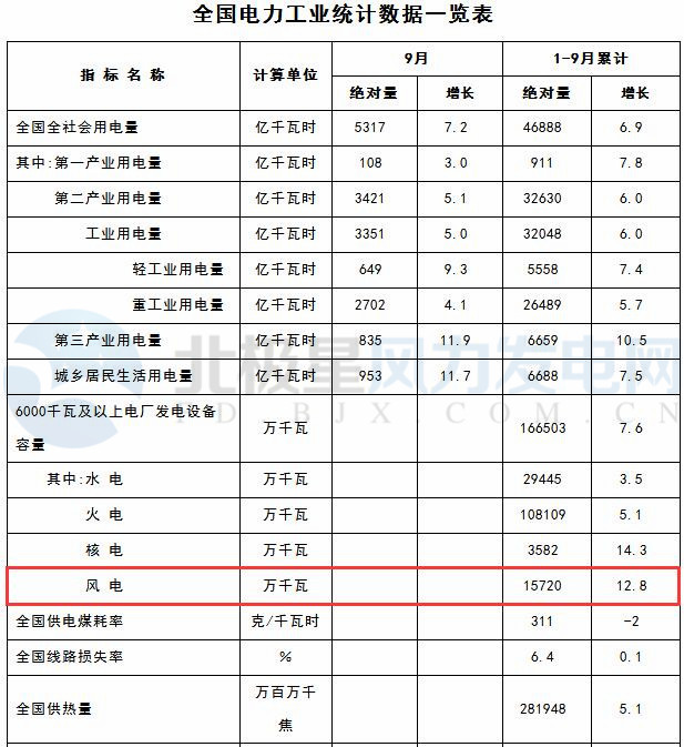 中國(guó)儲(chǔ)能網(wǎng)訊:國(guó)家能源局昨日(10月23日)公布1-9月份全國(guó)電力工業(yè)統(tǒng)計(jì)數(shù)據(jù)。數(shù)據(jù)顯示,1-9月全國(guó)6000千瓦及以上風(fēng)電發(fā)電設(shè)備容量累計(jì)157.2GW(15720萬千瓦),同比增長(zhǎng)12.8%。以下為具體數(shù)據(jù):