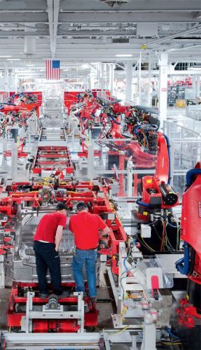 弗里蒙特市的特斯拉工廠就是在傳統(tǒng)汽車公司基礎(chǔ)上改建而來。這座建于1984年,占地有100多個(gè)足球場大小的建筑群曾經(jīng)是豐田公司的資產(chǎn),它是日本汽車大舉入侵美國的見證,在這里過去每年有45萬輛車被制造出來。[page]