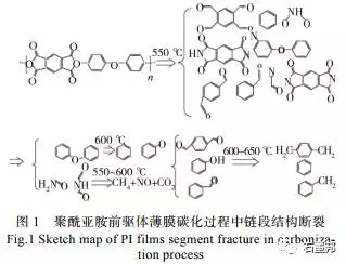 聚合物結(jié)構(gòu)演變在低溫?zé)峤饽さ倪^程首先進行鏈段結(jié)構(gòu)斷裂和熱交聯(lián)反應(yīng),熱交聯(lián)反應(yīng)實現(xiàn)聚酰亞胺結(jié)構(gòu)重整。經(jīng)過多次試驗分析發(fā)現(xiàn),聚酰亞胺結(jié)構(gòu)重整發(fā)生在550~700℃,此時聚酰亞胺 結(jié)構(gòu)中的亞胺環(huán)分解、醚鍵斷裂,生成的自由基發(fā)生熱交聯(lián)反應(yīng)形成穩(wěn)定的立體結(jié)構(gòu)。石墨邦 www.shimobang.cn —國內(nèi)首家碳石墨電商平臺 酰亞胺環(huán)的分解與醚鍵的斷裂造成結(jié)構(gòu)重排,形成交聯(lián)結(jié)構(gòu),由線性結(jié)構(gòu)逐步形成網(wǎng)絡(luò)結(jié)構(gòu)。逐漸形成六角碳環(huán)的多環(huán)芳環(huán)結(jié)構(gòu),進一步稠環(huán)化轉(zhuǎn)化成平面網(wǎng)狀結(jié)構(gòu),形成碳微晶,進而無序堆積成類石墨烯結(jié)構(gòu)。