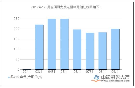 2017年9月全國風力發(fā)電量為200%,累計值為1914%,同比增長36.8%,累計增長21%。
