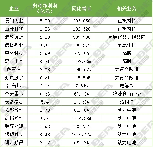 圖為16家鋰電相關(guān)企業(yè)前三季度業(yè)績報(bào)告