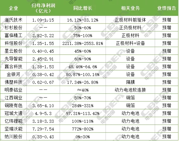 圖2為16家鋰電相關(guān)企業(yè)前三季度業(yè)績預(yù)告