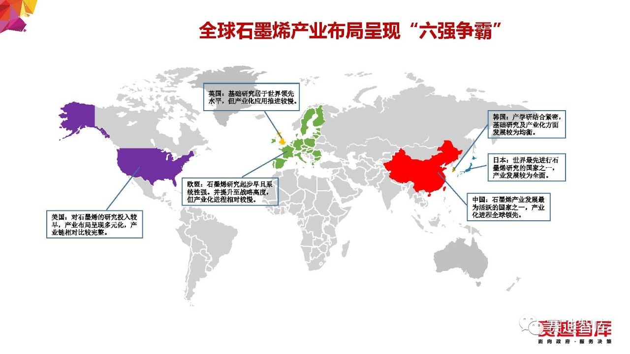 鑒于石墨烯優(yōu)越的材料性能及廣闊的應用前景,目前全球約有80多個多家和地區(qū)開展了石墨烯相關研究,紛紛出臺創(chuàng)新戰(zhàn)略、產(chǎn)業(yè)規(guī)劃、扶持政策等,并給予資金資助,不斷加大對石墨烯研究和產(chǎn)業(yè)化的支持力度,美國、中國、英國、日本、韓國、歐盟及其成員國先后從國家層面開展戰(zhàn)略部署,出臺多項扶持政策和研究計劃,處于全球石墨烯技術研究與產(chǎn)業(yè)化的前列。