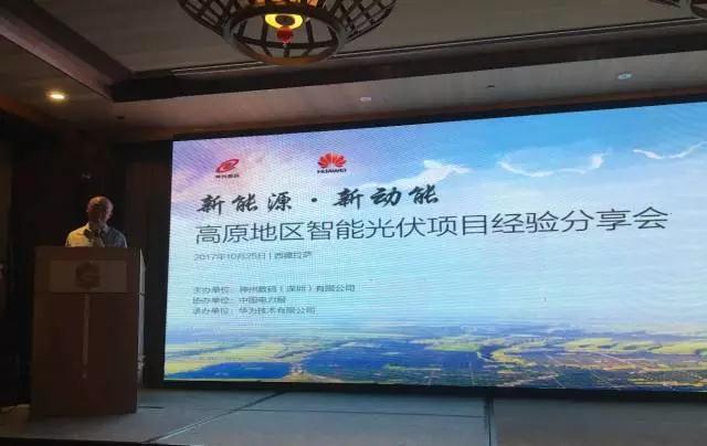 中國儲能網(wǎng)訊:2017年10月25日,在“日光之城”拉薩,由神州數(shù)碼(深圳)有限公司主辦,中國電力報協(xié)辦,華為技術(shù)有限公司承辦的以“新能源·新動能”為主題的高原地區(qū)智能光伏項目經(jīng)驗分享會成功舉辦。來自政府、電網(wǎng)公司、行業(yè)協(xié)會、EPC等領(lǐng)導(dǎo)專家會聚一堂,就“西藏光伏發(fā)展形勢及政策”、“光伏扶貧”、“離網(wǎng)光伏發(fā)展趨勢及解決方案”、“高海拔地區(qū)光伏電站建設(shè)與運(yùn)維”等熱點話題進(jìn)行了交流與實踐經(jīng)驗分享。
