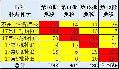 第7-9批新能源車目錄是16年發(fā)布的,今天發(fā)布第13批是17年第4批。16年從第八批目錄開始,受到騙補(bǔ)風(fēng)潮的影響,免稅目錄等的發(fā)布陷入停頓.低8批僅有414款。第九批目錄有1052款車型。